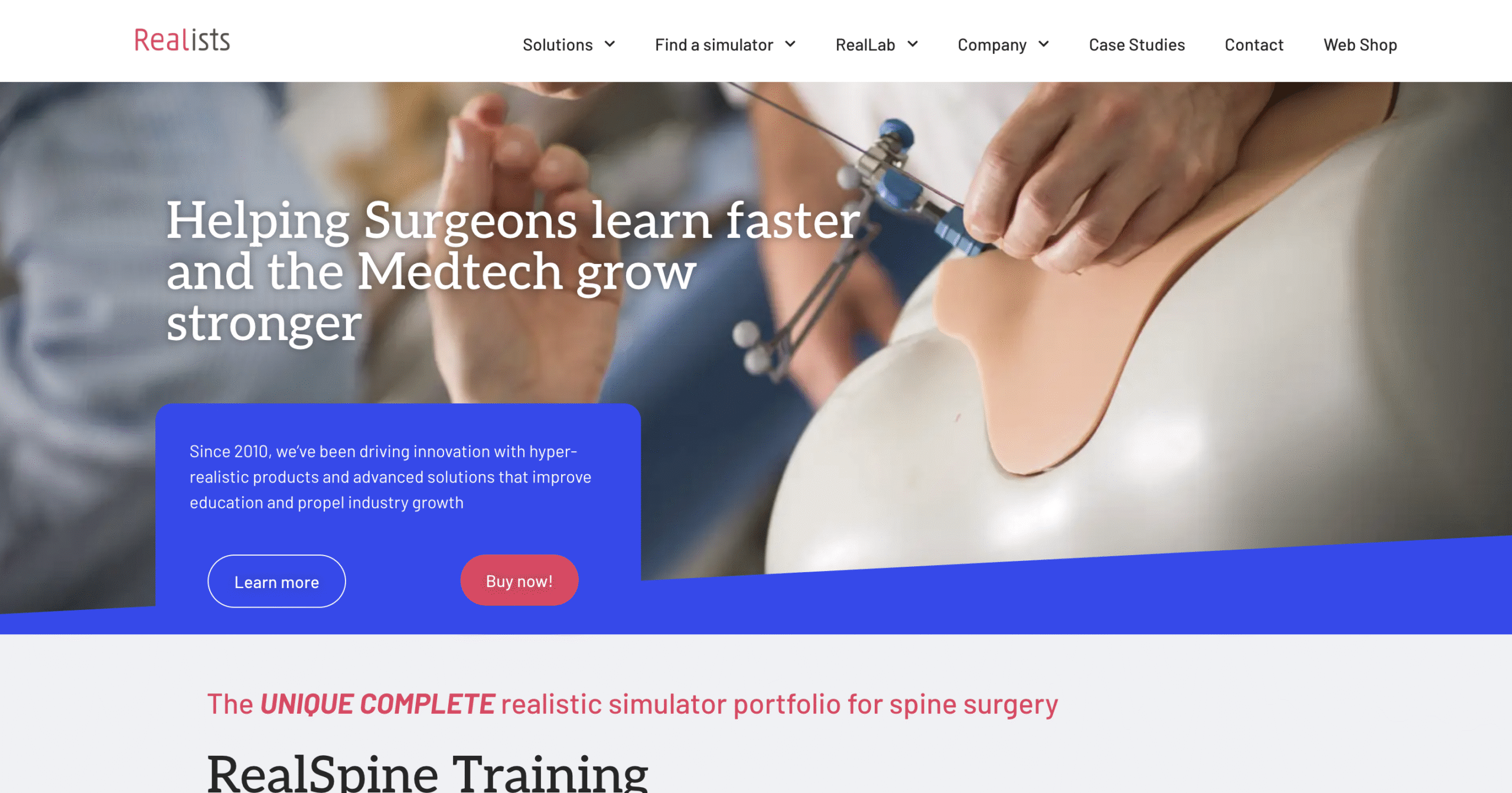 Website that improves user interaction for those seeking surgical training solutions, leading to increased business opportunities for the company.