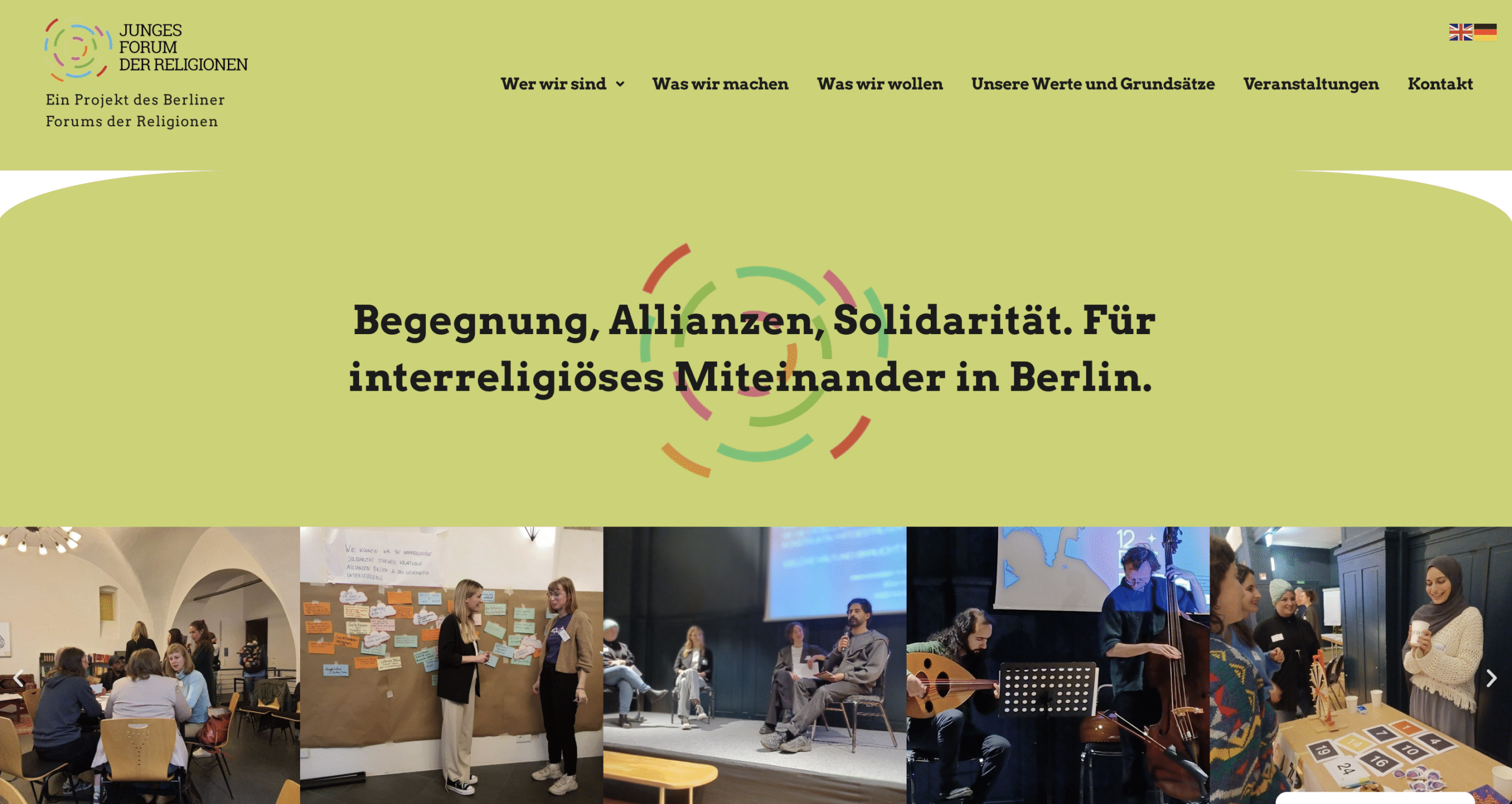 Website for the Junges Forum der Religionen in Berlin. The goal was include the colors of the logo in the UI to differentiate every area of the site, and a blog style in the project page.