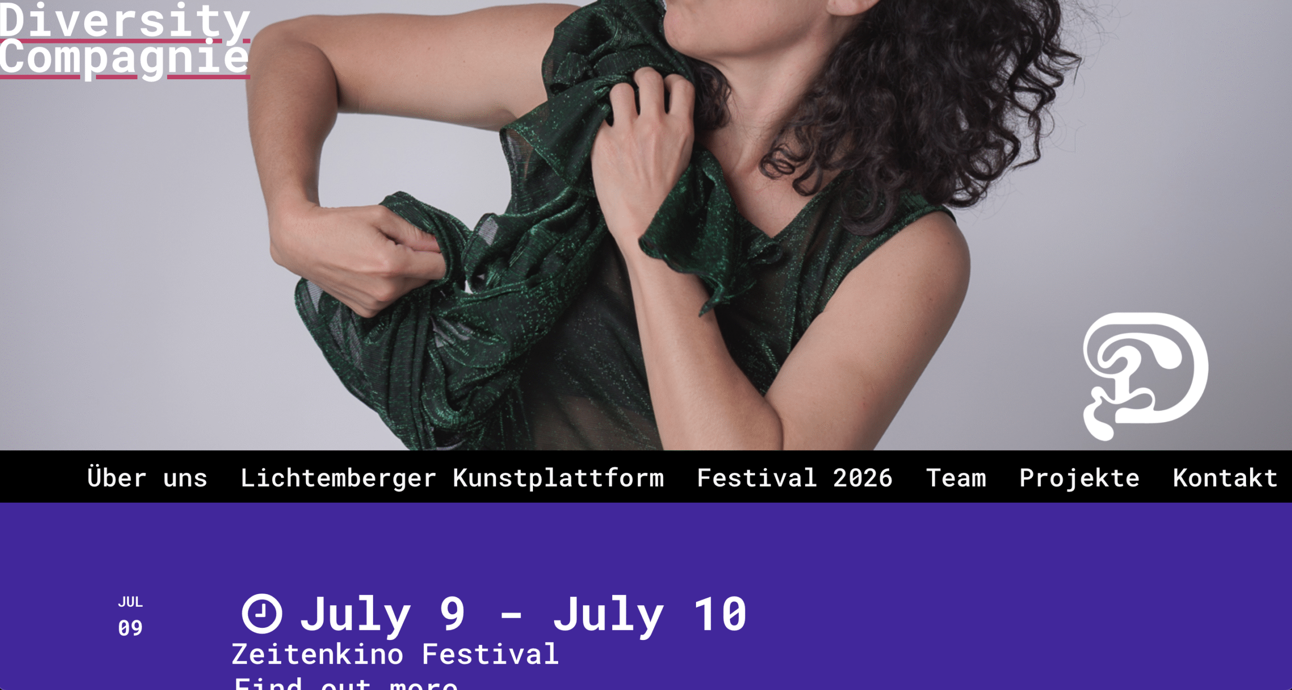 Website for queer artistic projects in Berlin, Diversity Compagnie, the goal was to highlight the last events with a visible calendar, and a visual journal of past events.